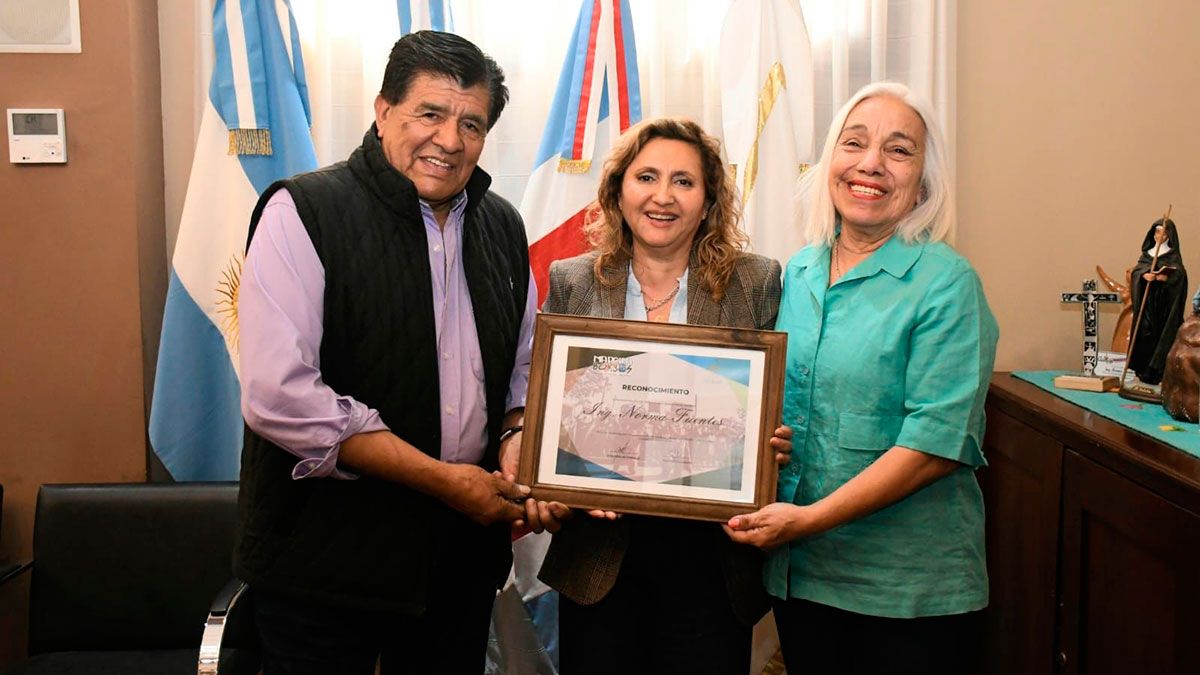 Los referentes de la Marcha de Los Bombos entregaron un reconocimiento a la intendente por su aporte en la última edición de dicho evento.