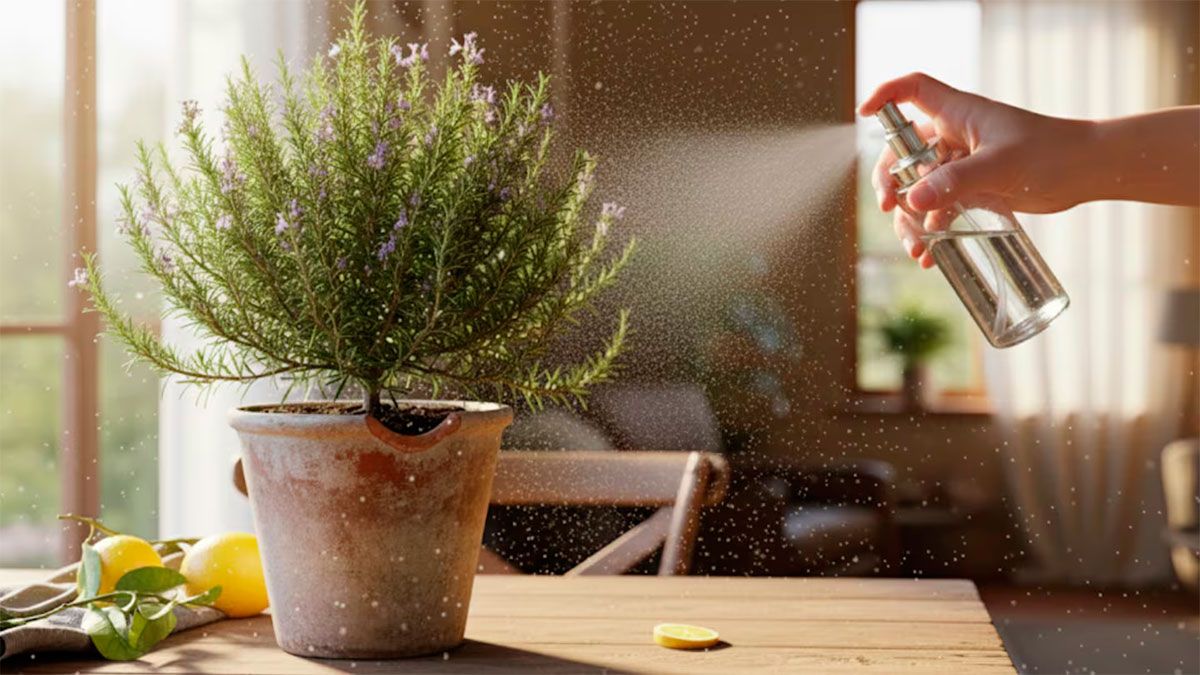 Un rociado regular ayuda a mantener las plagas a raya, mientras que una buena ventilación evita la aparición de enfermedades. Este sencillo truco combina protección, prevención y estética, convirtiéndose en un aliado imprescindible para cualquier amante del romero.