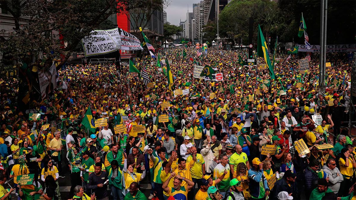 Unas horas antes, sindicatos y movimientos sociales de izquierda reunieron a unas 9000 personas en un acto contra la posible amnistía en el centro de San Pablo, según contabilizó el Monitor de Debate Político de la Universidad de Sao Paulo.