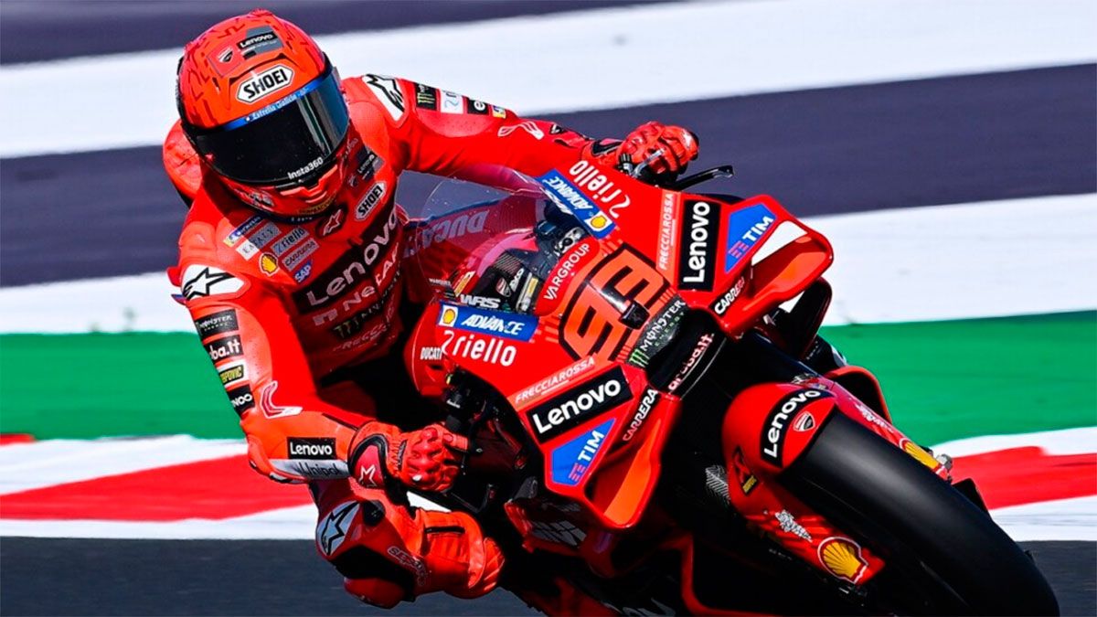 Se completó la jornada inicial del Gran Premio de San Marino, 16ª fecha del campeonato mundial de Motociclismo, y en la pista de Misano el más rápido fue Marc Márquez con la Ducati oficial de MotoGP al registrar 1m30s480 para cubrir los 4.226 metros, superando por 147/1000 a Marco Bezzecchi, quien había liderado en la tanda matutina.