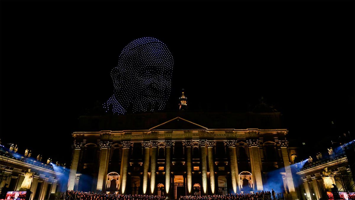Este sábado, la Plaza de San Pedro en el Vaticano se colmó de personas y fue testigo de un espectáculo que combinó arte, innovación y espiritualidad. Durante el evento, miles de drones se elevaron sobre Roma para formar en el cielo la imagen del papa Francisco.