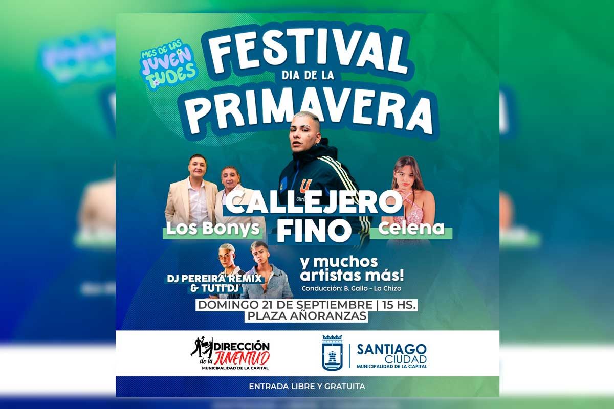 La Municipalidad de la Capital organizará un festival el próximo domingo 21, en el Día de la Primavera y de los Estudiantes con entrada libre y gratuita y con la presencia de destacados artistas de diferentes géneros musicales.
