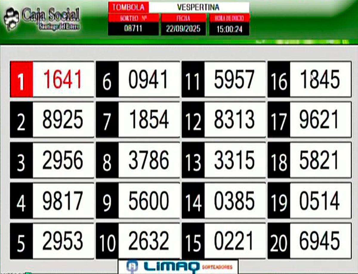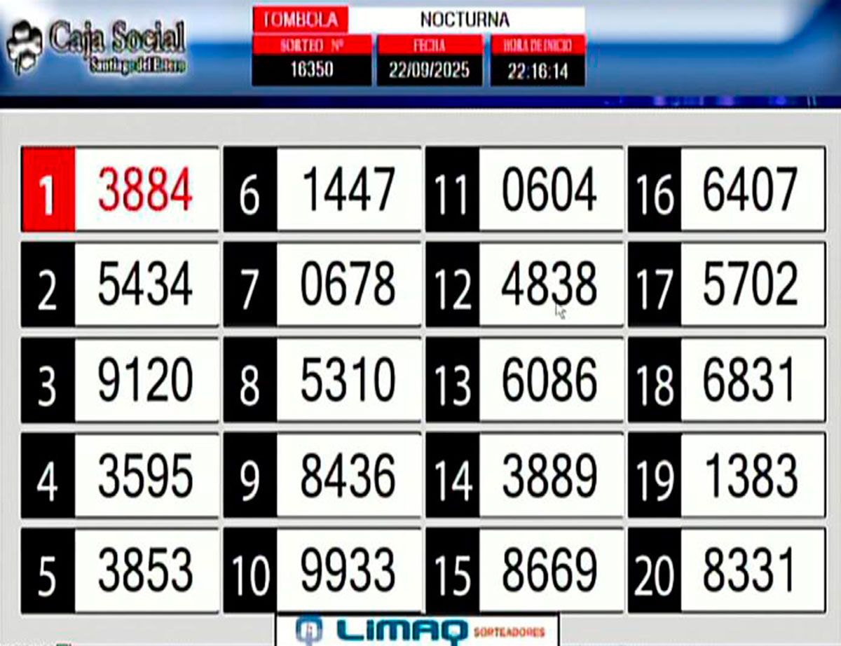 Este lunes 22 de septiembre, como todos los días, se llevó a cabo un nuevo sorteo de la Tómbola Santiagueña.