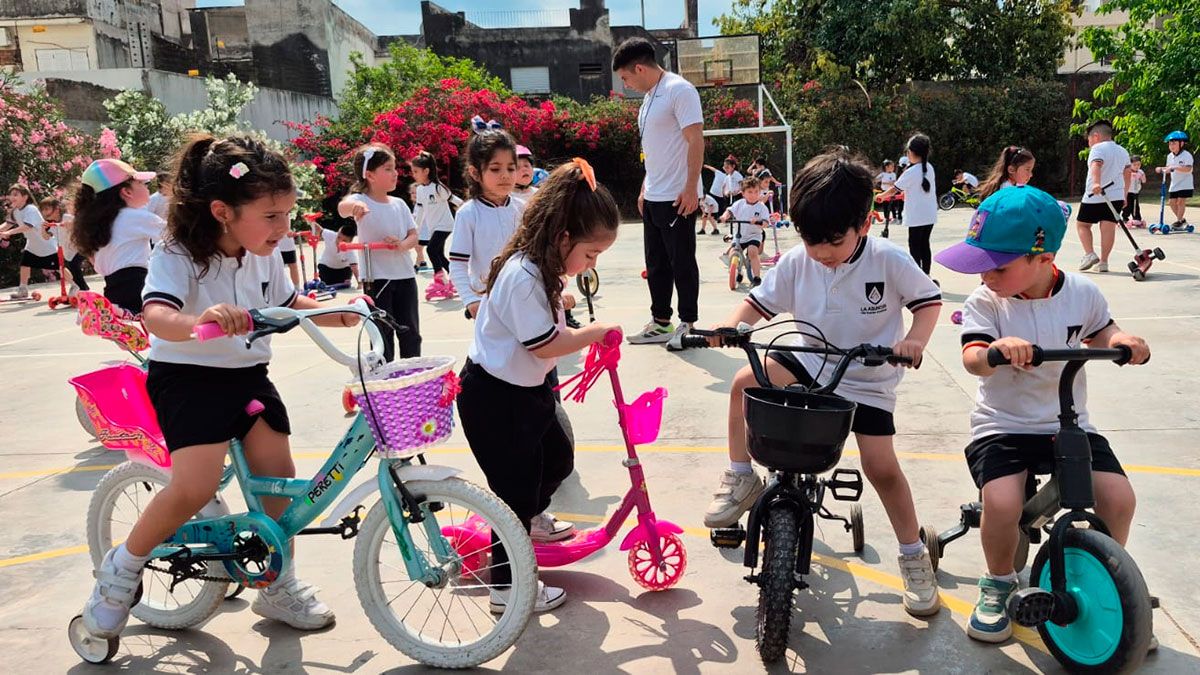 Por su parte, la directora del nivel primario, Lic. Cecilia Paz, señaló que la jornada fue especial porque los estudiantes ingresaron con sus rodados y encontraron diferentes propuestas lúdicas en el patio escolar. “Fue un día en el que pudieron crear, explorar, imaginar, tomar decisiones y vivir una experiencia inolvidable”, resaltó.