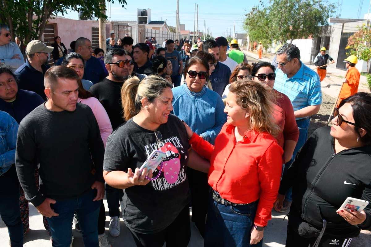 La intendente, Ing. Norma Fuentes, supervisó la obra de pavimentación de 24 cuadras en el barrio Néstor Kirchner, en el sector oeste de la ciudad, en donde fue acompañada por vecinos.