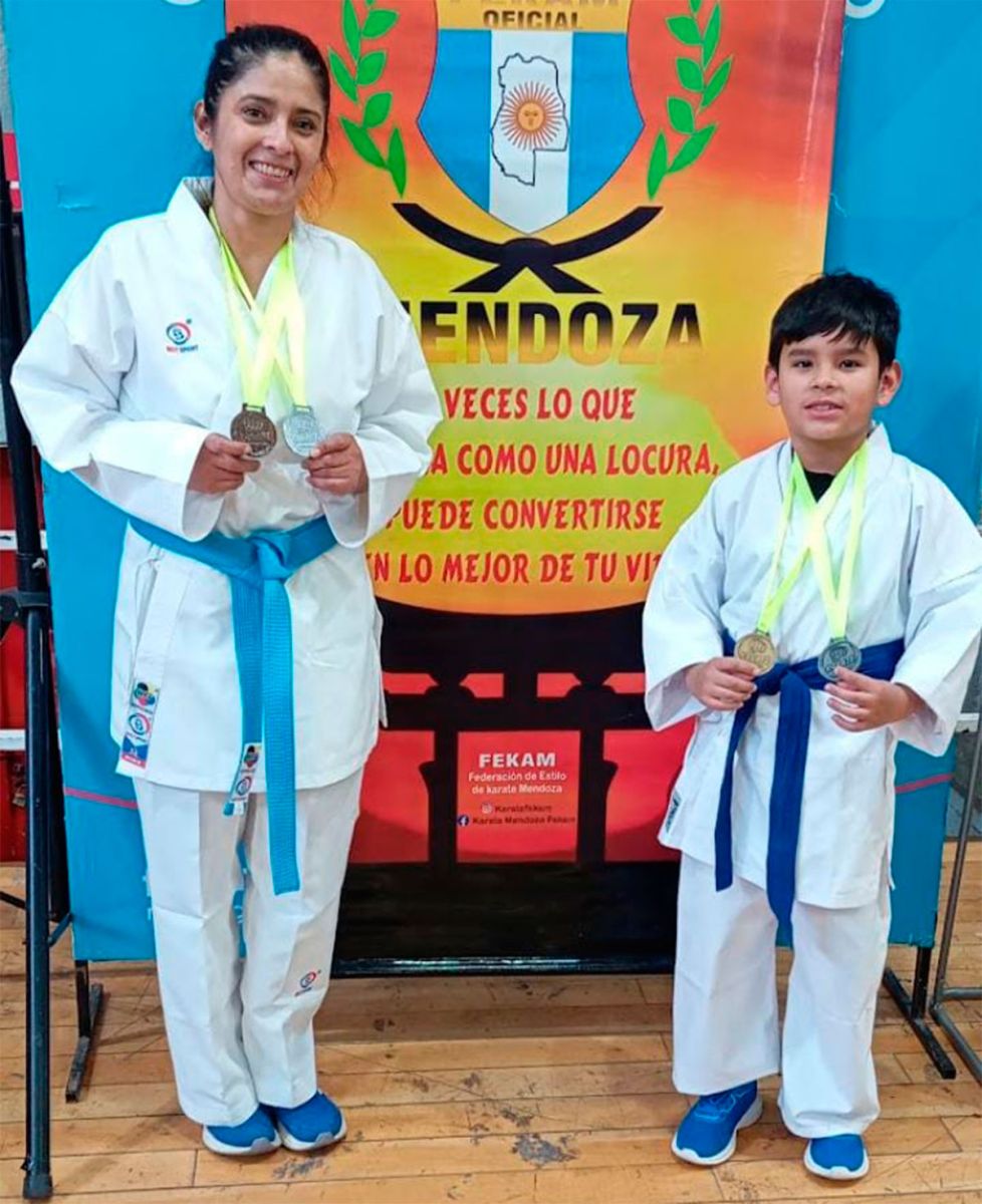 Con 45 años, Andrea Loto —ex árbitro de fútbol nacional y actual presidenta de la Comisión Arbitral de la Federación Santiagueña de Fútbol— conquistó la medalla de plata en Kumite (combate), demostrando que la pasión y el esfuerzo no tienen edad. En tanto, su hijo Jhonas Lugones, de apenas 10 años, se consagró campeón nacional en Kata niños hasta 10 años y además obtuvo la medalla de plata en Kumite en la categoría de 10 a 11 años.
