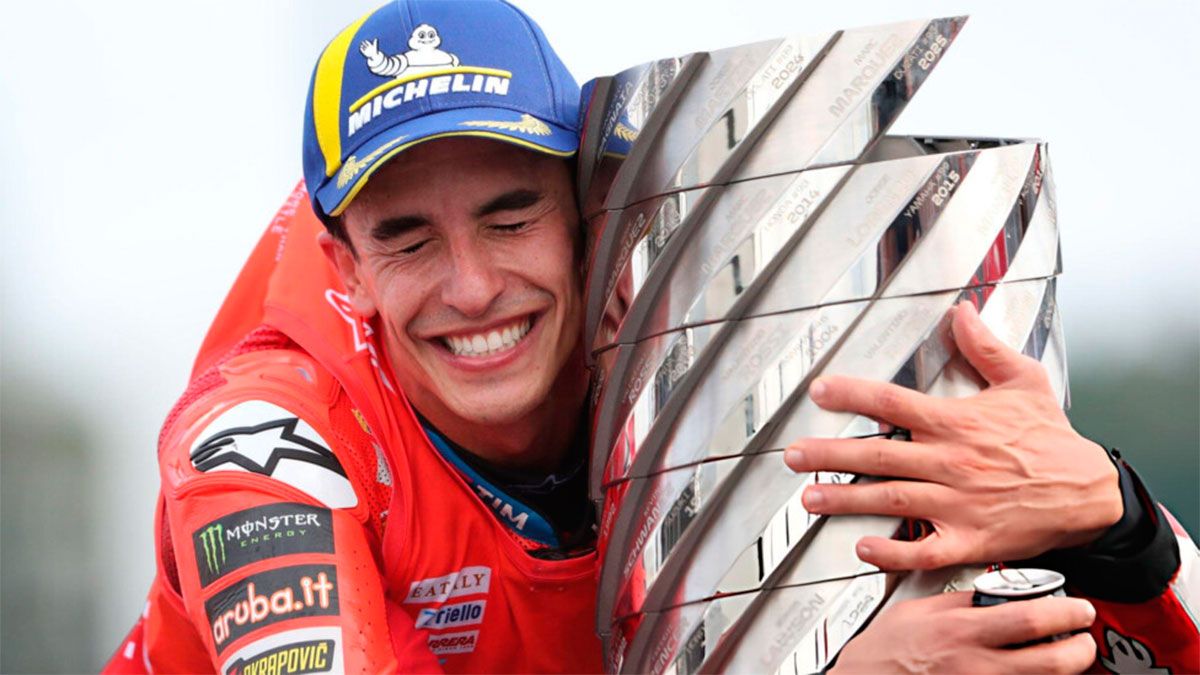 Para Márquez, el de hoy es el primer galardón que logra en MotoGP bajo otra insignia que no sea Honda. El de Cervera estuvo identificado por años con la casa japonesa, con quien logró los títulos de 2013, 2014, 2016, 2017, 2018 y 2019. Festeja ahora por primera vez junto a Ducati y tercera con otra factoría: en 2010 gritó campeón con el fabricante español Derbi en 125cc e hizo lo propio con la suiza Suter en Moto2.
