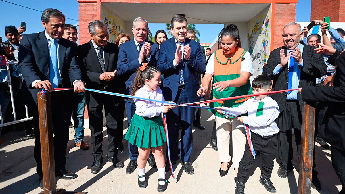 El gobernador Gerardo Zamora, junto con el vicegobernador, Carlos Silva Neder, y el jefe de Gabinete, Elías Suárez, visitó este lunes la ciudad de Pinto, cabecera del departamento Aguirre, donde inauguró el nuevo edificio del Jardín de Infantes “Travesuras” y entregó viviendas sociales amobladas a familias que se encontraban en situación de vulnerabilidad habitacional.