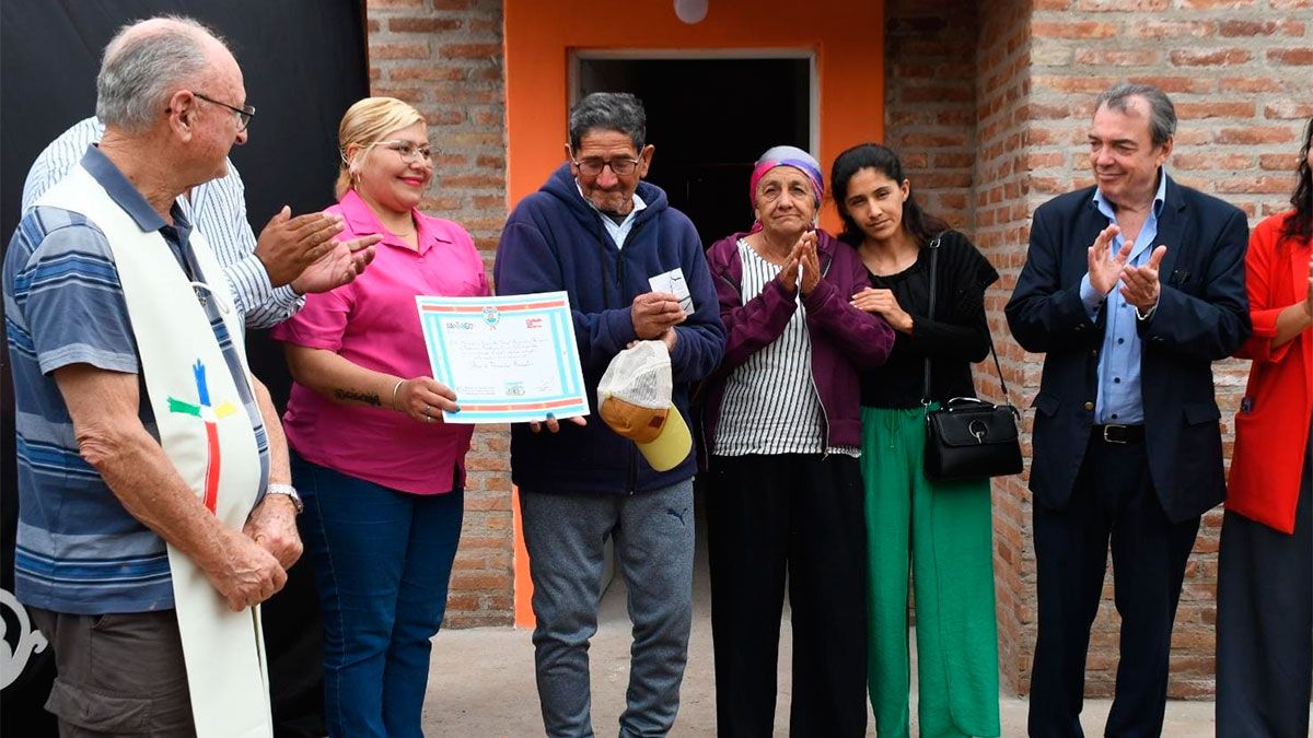 En representación del gobernador Gerardo Zamora, el ministro de Desarrollo Social, Hugo Niccolai, encabezó este martes en la localidad de Bandera Bajada la ceremonia de entrega formal de viviendas sociales a 20 familias de Cardón Esquina, Vaca Huañuña y otras poblaciones del departamento Figueroa.