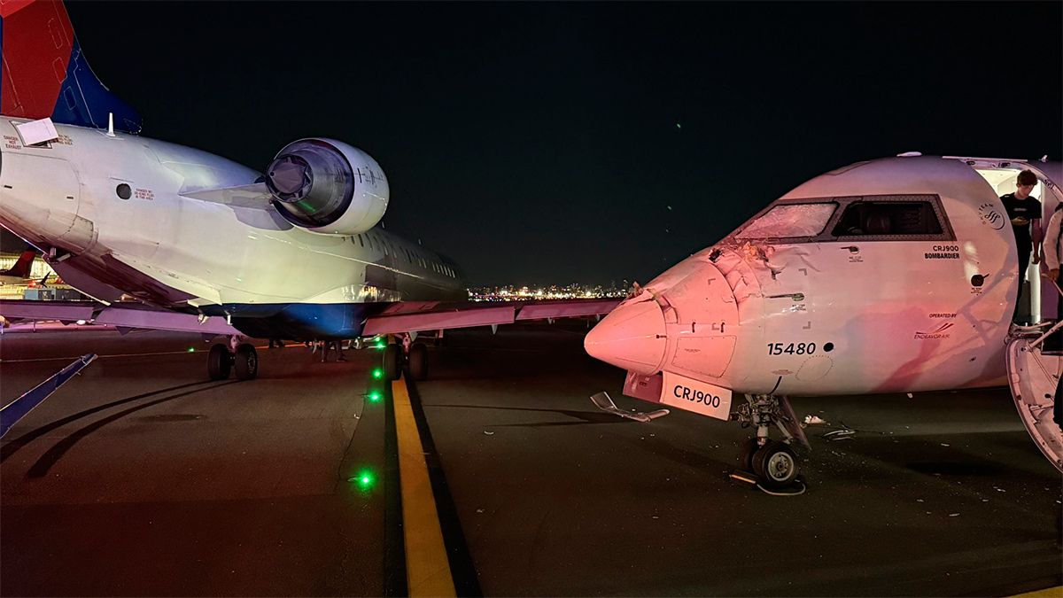 Dos aviones regionales de Delta Connection, operados por Endeavor Air, colisionaron a baja velocidad mientras rodaban por la pista del aeropuerto LaGuardia de Nueva York la noche de este miércoles.
