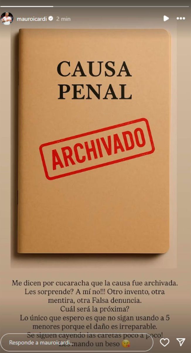 Mauro Icardi compartió este jueves en sus historias de Instagram una imagen de un expediente y un contundente mensaje: “Causa penal archivada”.