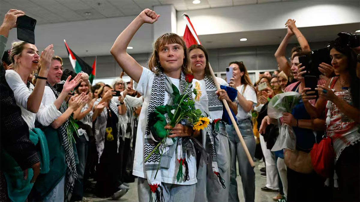 Al llegar a Atenas, Thunberg pidió no centrar la atención en los “maltratos y abusos” sufridos bajo custodia israelí sino en el “genocidio que está siendo transmitido en directo”, en referencia a la ofensiva militar israelí en la Franja de Gaza.
