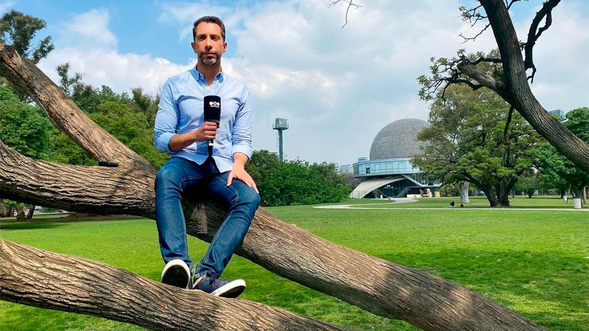 Daniel Roggiano inició su informe en vivo para Telefe Noticias con total normalidad, detallando el estado del tiempo para el AMBA y el pronóstico de lluvias.