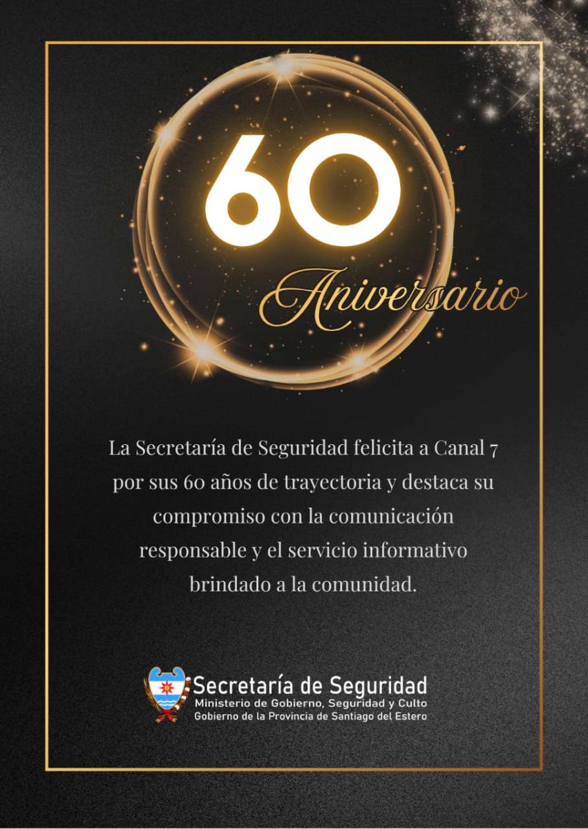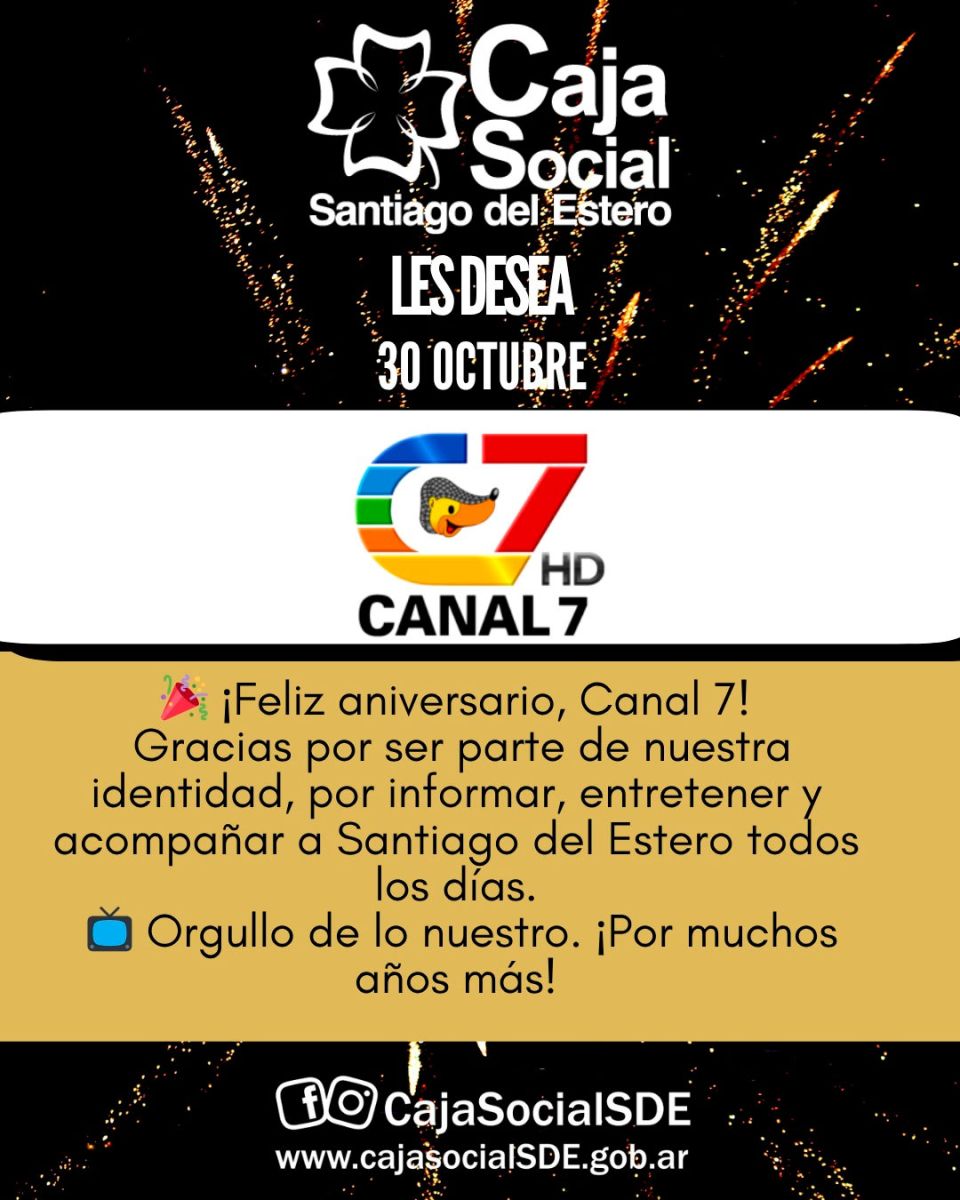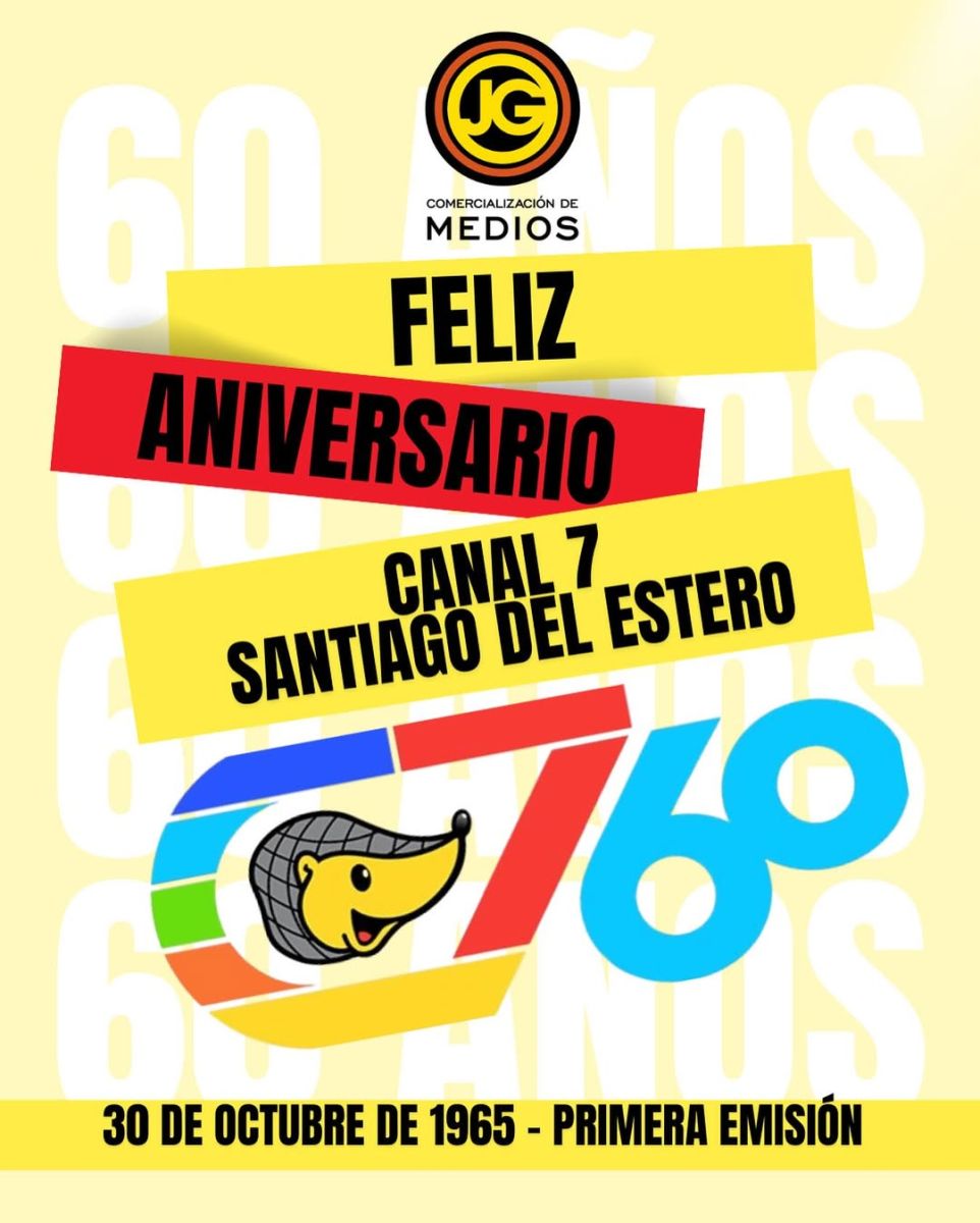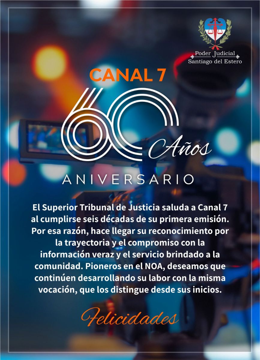 Este 30 de octubre, Canal 7 de Santiago del Estero celebra 60 años de vida institucional y numerosas instituciones, organismos gubernamentales, empresas y entidades privadas hicieron llegar sus felicitaciones al equipo.
