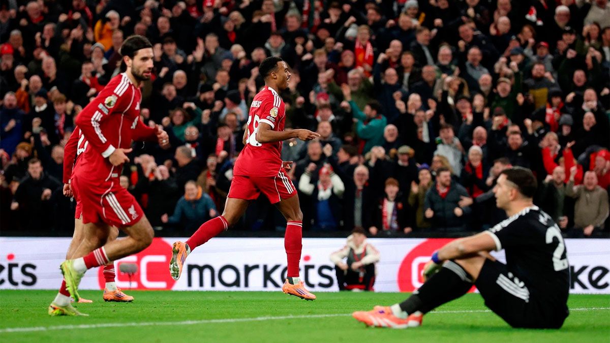 Por eso era cuestión de tiempo para que el Liverpool extendiera la ventaja, y así lo hizo. Cuando pisó el acelerador, los Reds se pusieron 2-0. Fue cuando el equipo decidió invadir el campo de la visita para juntar pases hasta que Gravenberch realizó un potente remate que se desvió en Torres y dejó sin nada para hacer al Dibu. 2-0 y a cobrar.