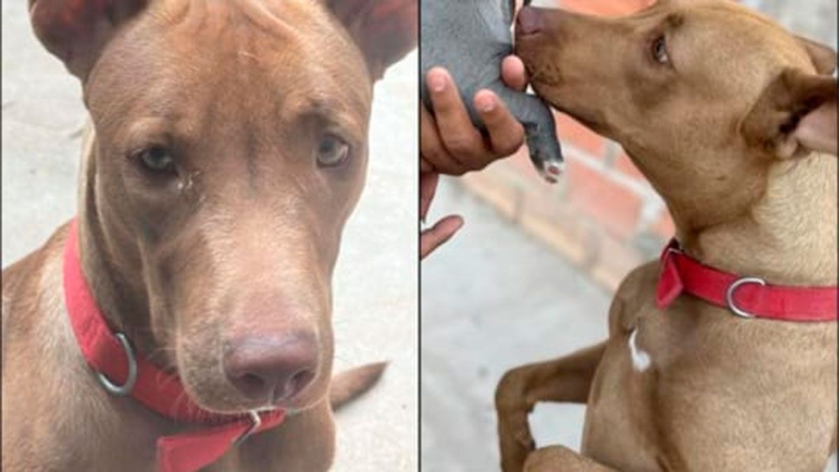 Luna es de tamaño mediano, marroncita y presenta pequeñas pintitas blancas, como salpicaduras, un detalle que puede ayudar a identificarla rápidamente. Responde a su nombre y es muy dócil.