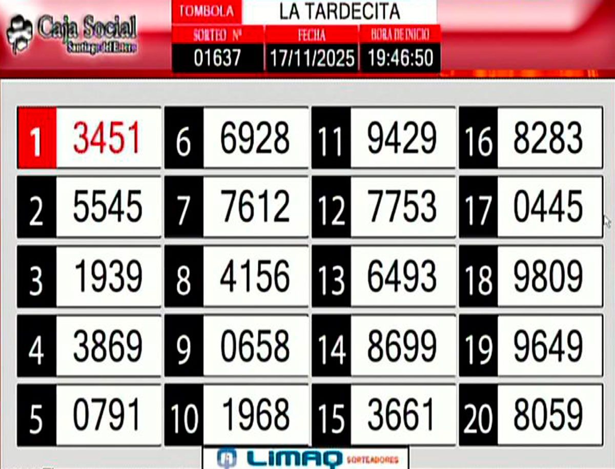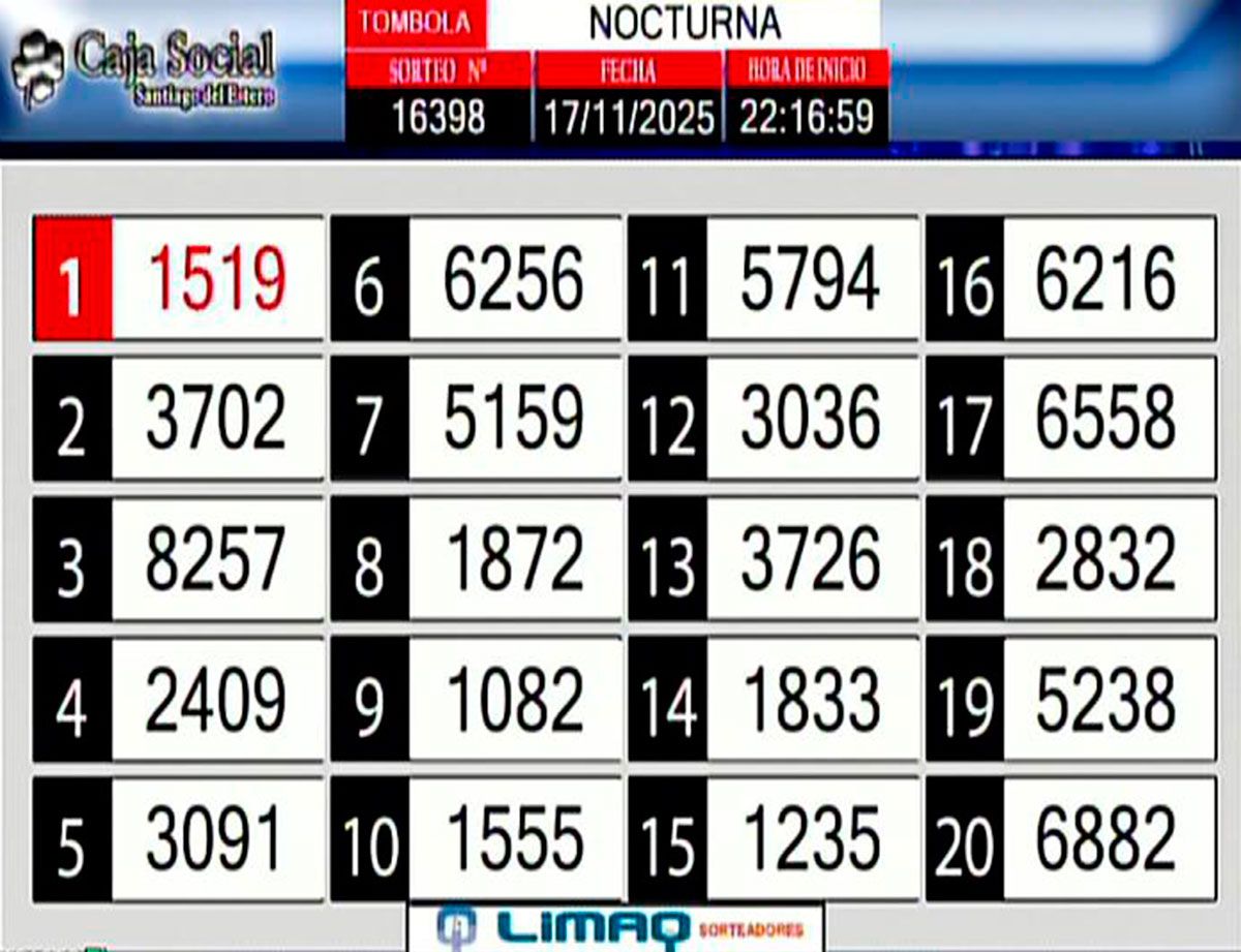 Este lunes 17 de noviembre, como todos los días, se llevó a cabo un nuevo sorteo de la Tómbola Santiagueña.