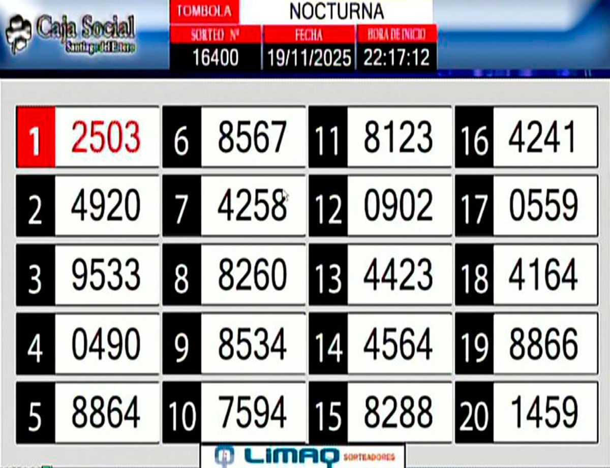 Este miércoles 19 de noviembre, como todos los días, se llevó a cabo un nuevo sorteo de la Tómbola Santiagueña.