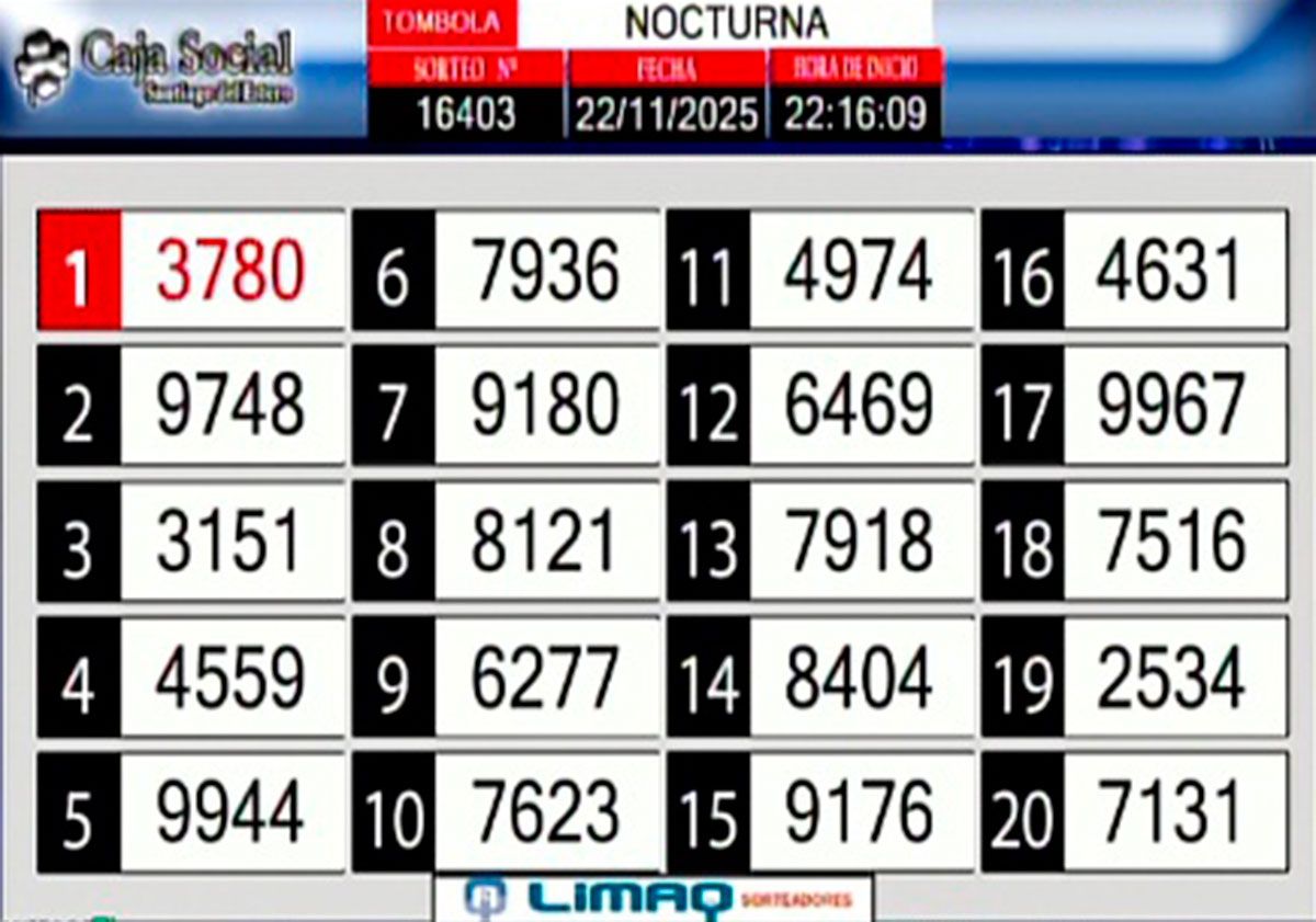 Este sábado 22 de noviembre, como todos los días, se llevó a cabo un nuevo sorteo de la Tómbola Santiagueña.