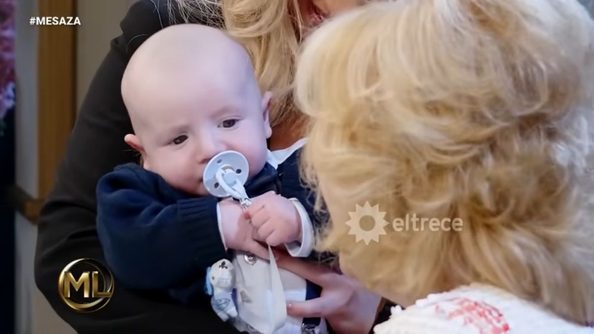 Enternecida por la presencia del bebé, Mirtha no ocultó su emoción: “Con zapatillos. Todo, lo vistieron para televisión. ¡Qué divino!”. La abogada respondió con una sonrisa mientras acomodaba al niño: “Ahí está. Le agarro el chupetito. Es re bueno, aparte”.