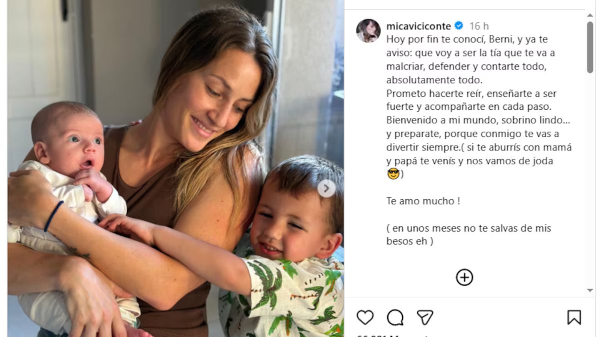 En el posteo, Mica no solo presentó oficialmente a su sobrino, sino que también le dedicó un mensaje cargado de emoción, dejando en claro el lugar especial que Berni ocupa en su vida.