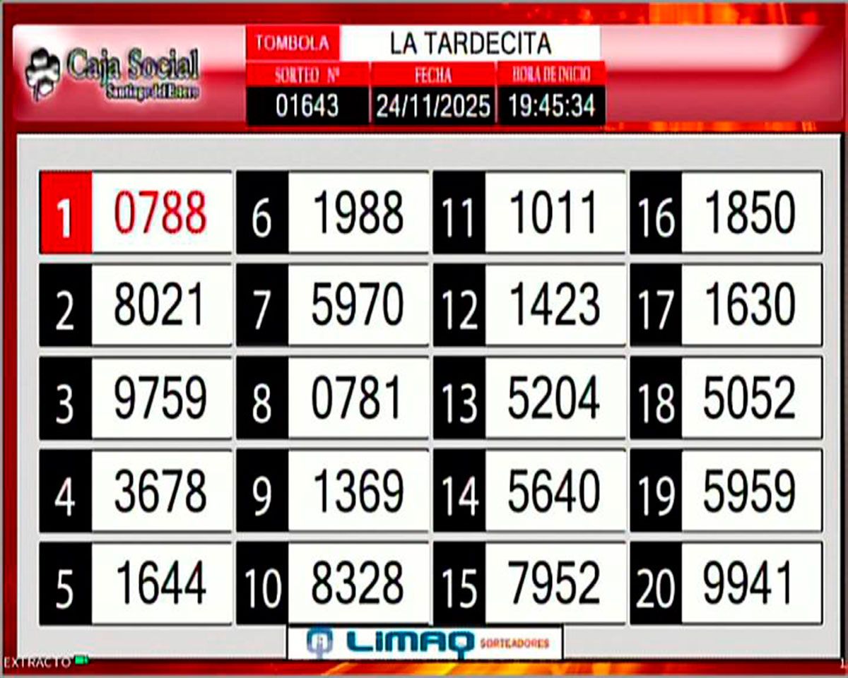Este lunes 24 de noviembre, como todos los días, se llevó a cabo un nuevo sorteo de la Tómbola Santiagueña.