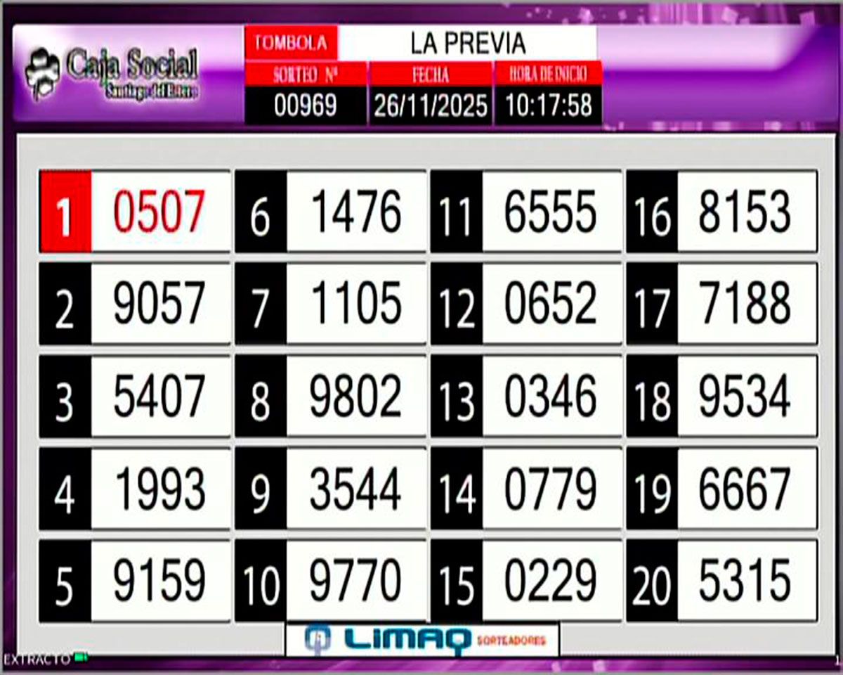 Este miércoles 26 de noviembre, como todos los días, se llevó a cabo un nuevo sorteo de la Tómbola Santiagueña.