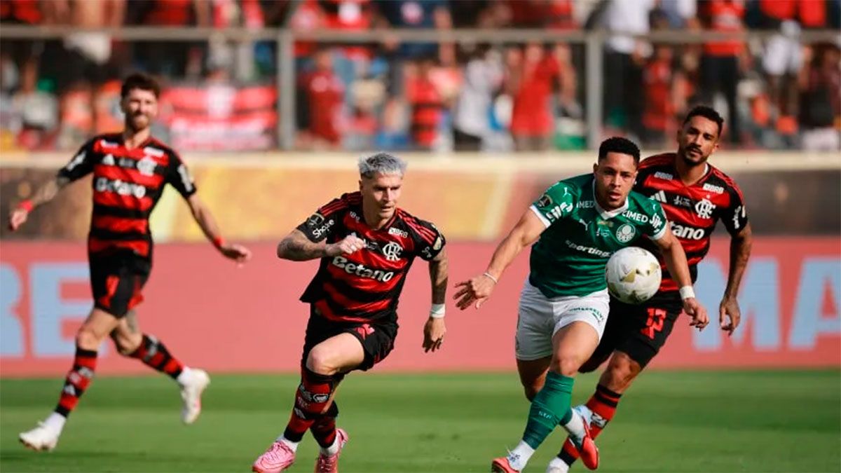 Vaya amor peruano para el Flamengo, que volvió al recinto en el que consiguió aquella épica del 2019 ante River con el objetivo de levantar su cuarta Copa Libertadores. Enfrente estaba su enemigo más temido, el Palmeiras de Abel Ferreira, aquel que le había ganado en 2021 con gol de Deyverson en el alargue tras un error de Andreas Pereira. Lo curioso es que el volante ahora estaba en Palmeiras y volvió a perder una final de Libertadores, pero en este caso con la camiseta verde.