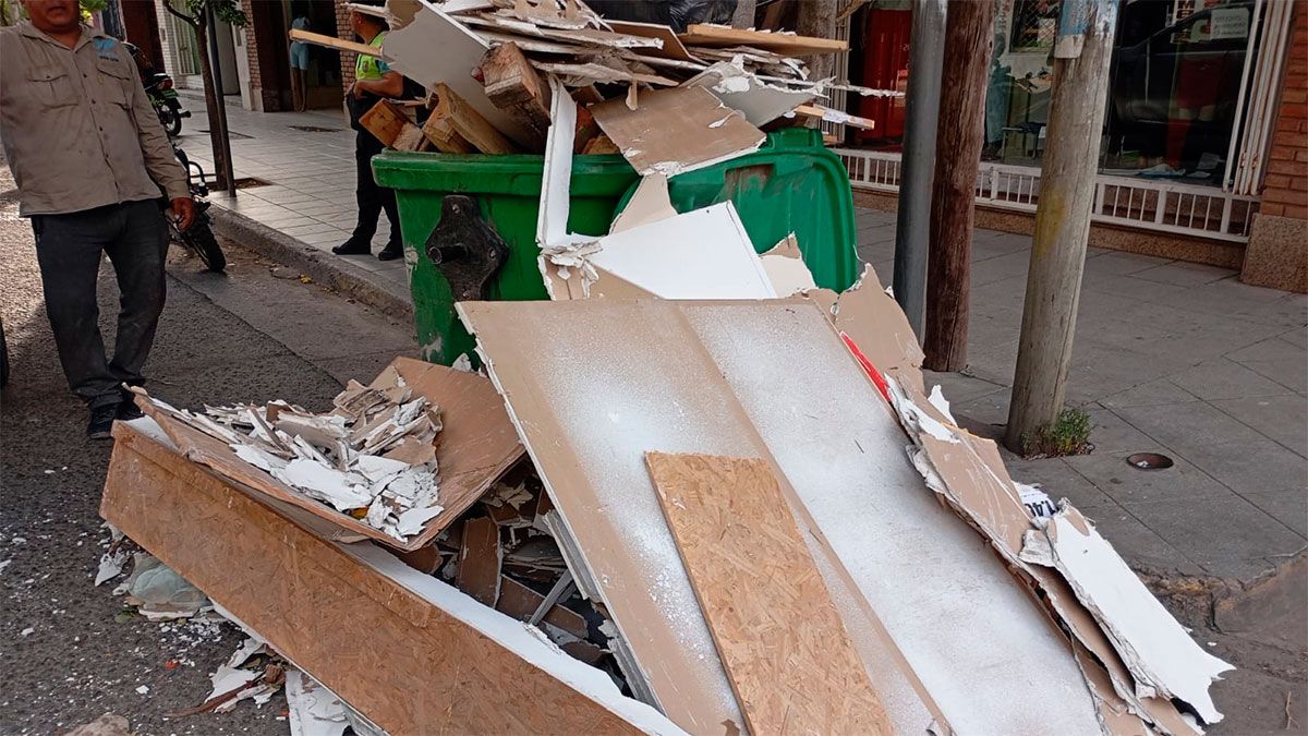 El día viernes, personal municipal del área mencionada detectó un contenedor en la intersección de calles España y Sarmiento con una importante cantidad de madera y durlock provenientes seguramente de una obra de construcción o refacción de un edificio.