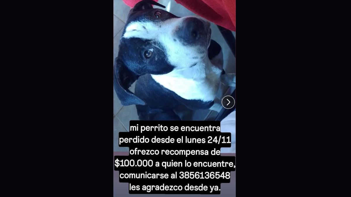 Según informaron, el animal desapareció sin dejar rastro y, ante la preocupación por su bienestar, decidieron ofrecer una recompensa de $100.000 a cualquier persona que pueda aportar datos certeros o lograr encontrarlo. La imagen difundida muestra al perro, de pelaje blanco y negro, de expresión dócil.
