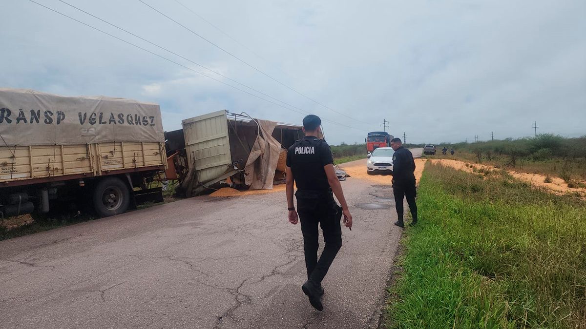 Según informaron fuentes policiales, el conductor —un hombre de 34 años, oriundo de Jujuy— perdió el control del acoplado luego de que una de las ruedas “mordiera” la banquina. Esto generó que el vehículo se desestabilizara y que una cantidad considerable de maíz quedara esparcida tanto sobre la calzada como en la banquina.