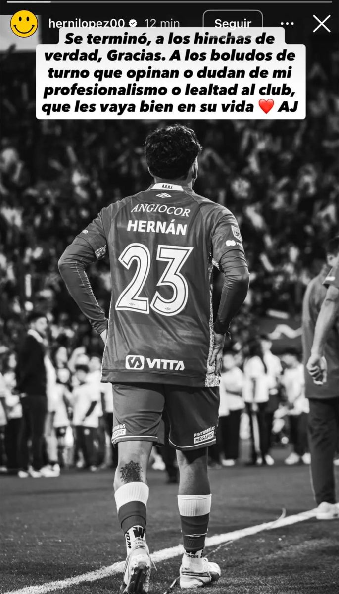 El zurdo amplió su descargo con un texto donde diferenció a los simpatizantes que lo apoyan de aquellos que criticaron su profesionalismo. “Se terminó. A los hinchas de verdad, gracias. A los boludos de turno que opinan o dudan de mi profesionalismo o lealtad al club, que les vaya bien en su vida”, escribió. El posteo llegó en medio de rumores que lo vinculan con Boca para la próxima temporada, algo que tomó fuerza luego de que su padre, Daniel López Maradona, no descartara un posible pase al Xeneize: “Hoy, en este momento, puede ser”, señaló.