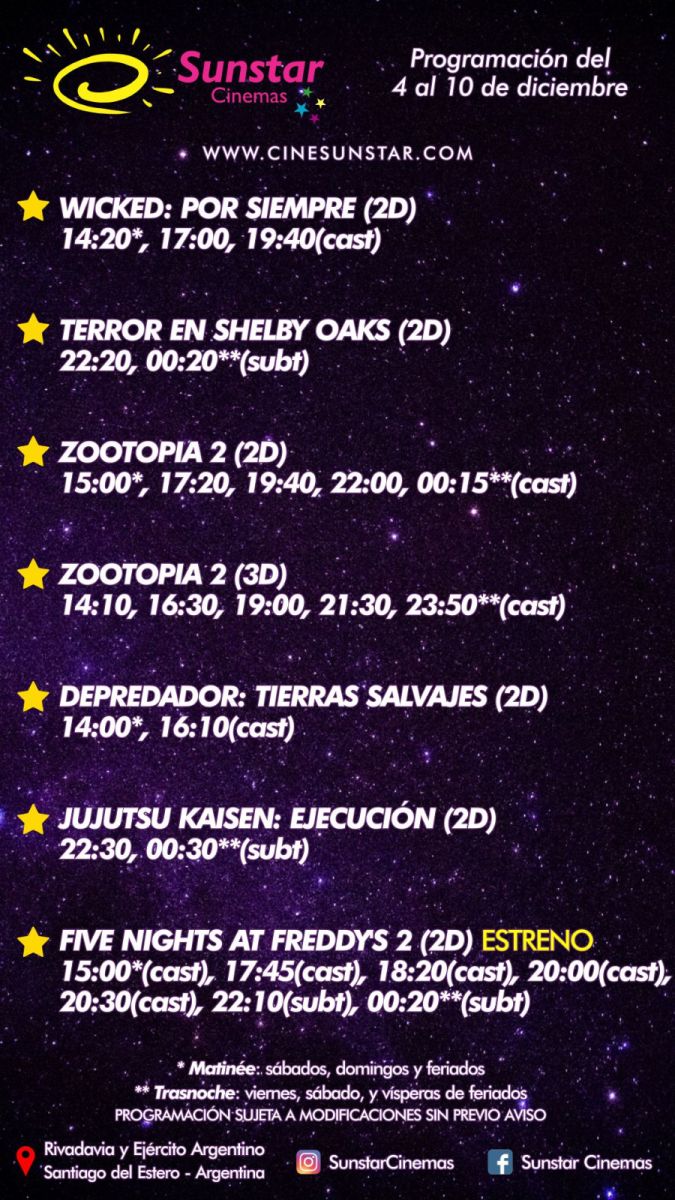 Como cada jueves, la cartelera de Cine Sunstar se renueva con los mejores estrenos. En este caso, llega la segunda parte de Five Nights at Freddy's, cinta de terror basada en el popular videojuego.