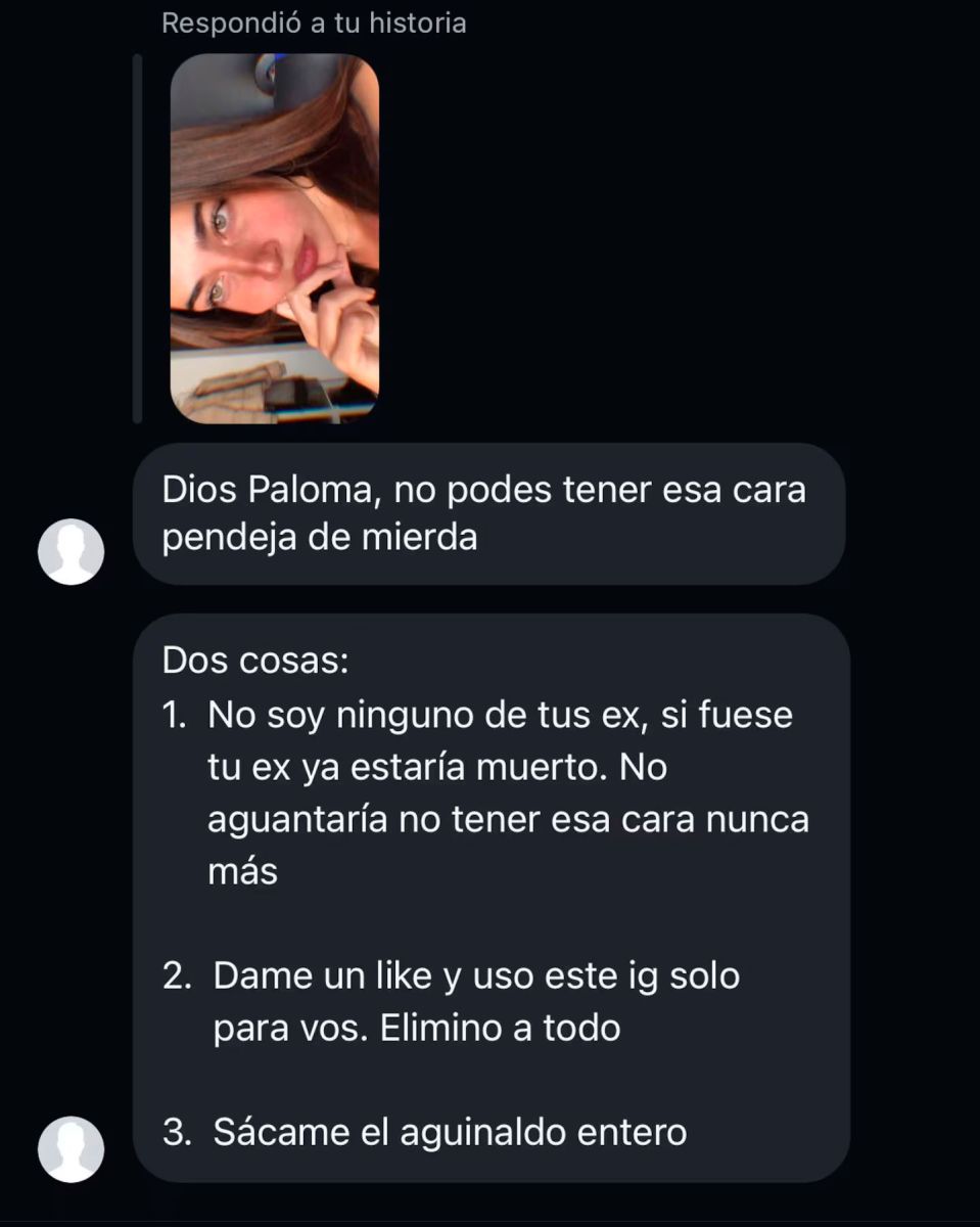 “Dios Paloma, no podés tener esa cara”, arrancó el mensaje, dejando en claro que la admiración era total. Pero eso fue solo el comienzo: el joven siguió con una lista de “dos cosas” que, en realidad, terminaron siendo tres.