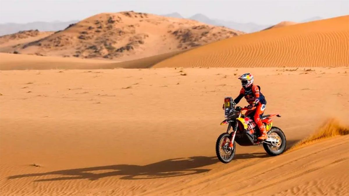 El piloto argentino de la KTM oficial número 77 dominó el octavo tramo, que empezó y terminó en Wadi ad-Dawasir, con 483 kilómetros de velocidad cronometrada y 238 de enlace. Le saca apenas 10 segundos a su compañero australiano Daniel Sanders, el último vencedor.
