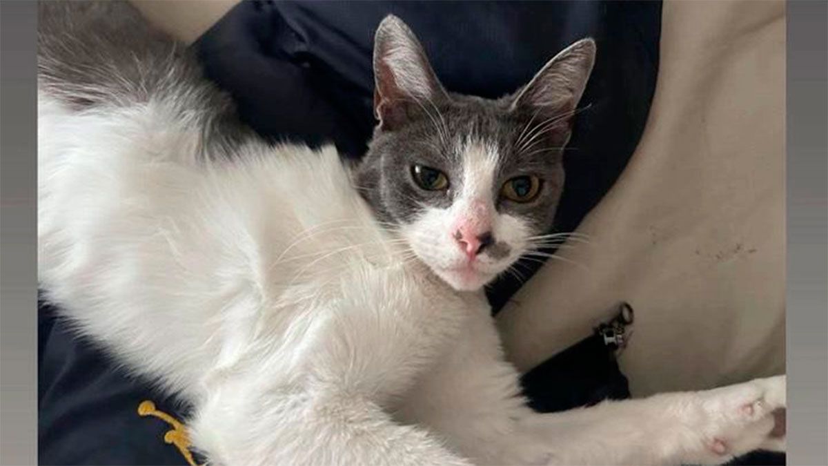 La gatita es de color blanco con gris y tiene una particularidad que puede ayudar a identificarla: un bigote manchado.