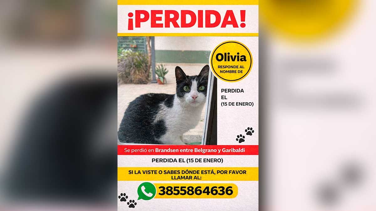 La familia de Olivia, una gata que se extravió el pasado 15 de enero, mantiene una búsqueda intensa en el barrio Ramón Carrillo de la ciudad Capital de Santiago del Estero, luego de que la mascota desapareciera en el sector de calle Brandsen, entre Belgrano y Garibaldi.
