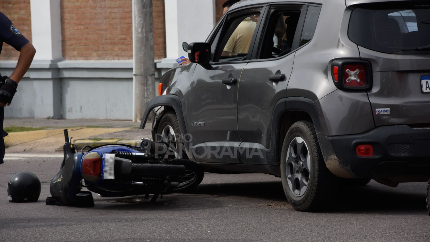 Por causas a establecer, la conductora del rodado menor impactó contra la parte delantera izquierda del Jeep, tras lo cual cayó al asfalto.