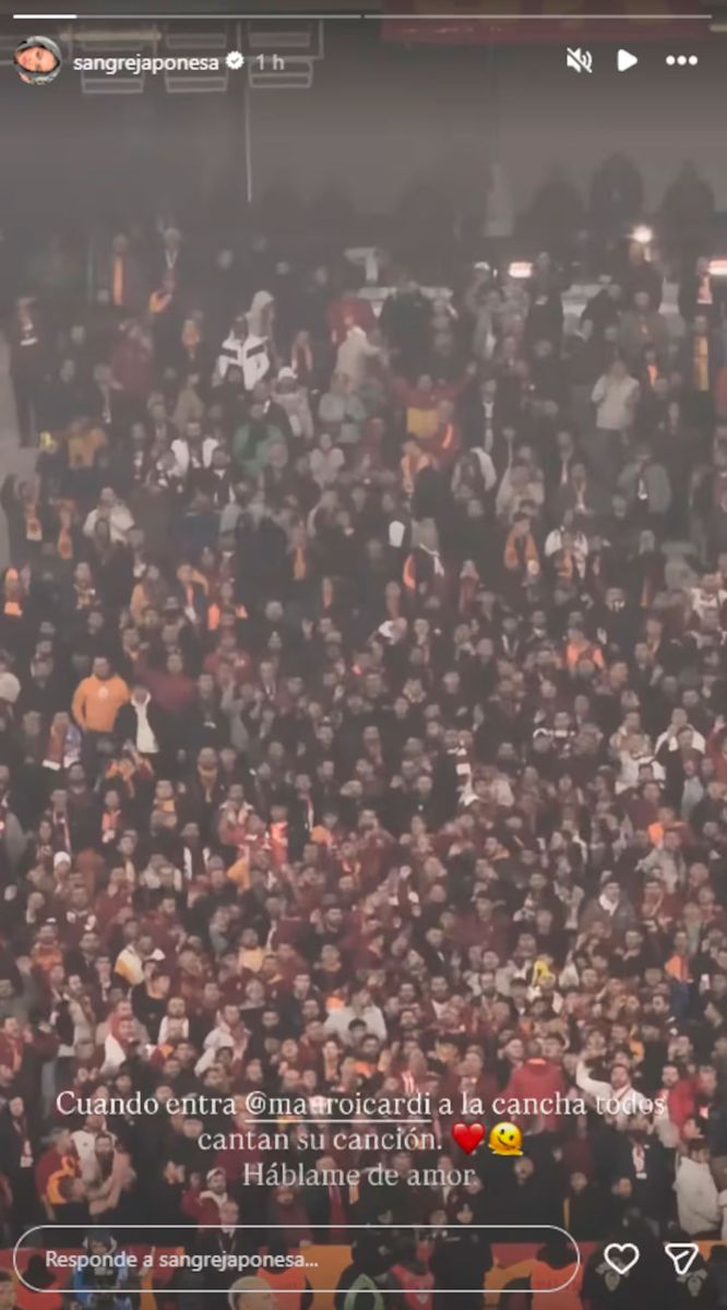 Este sábado, la actriz compartió una historia de Instagram desde Turquía, donde se la vio en la tribuna del estadio del Galatasaray, alentando al delantero argentino. En el video, se escuchó a los hinchas coreando el nombre de Icardi justo en el momento de su ingreso al campo de juego.