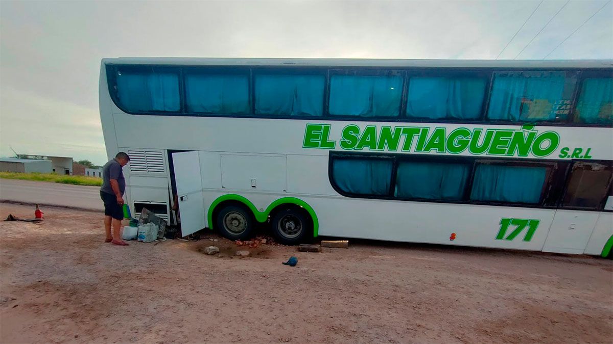 Lo que debía ser el tramo final de un extenso viaje comercial terminó en un inesperado incidente vial. Cerca de las 7 de la mañana de este lunes, un colectivo afectado a tours de compras quedó varado tras caer en un profundo pozo sobre la banquina, en la intersección de la Ruta Provincial 92 y la avenida Circunvalación, en Añatuya.