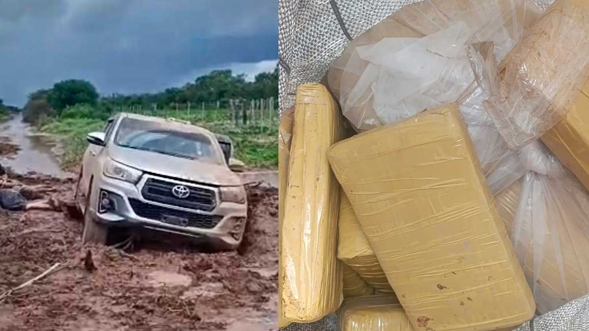 Durante la huida, una de las camionetas volcó a la vera de la cinta asfáltica, circunstancia que permitió a sus ocupantes internarse en una zona montuosa. En el lugar del siniestro, el personal policial halló tres bultos confeccionados con bolsas de arpillera, los cuales contenían sustancia prohibida.