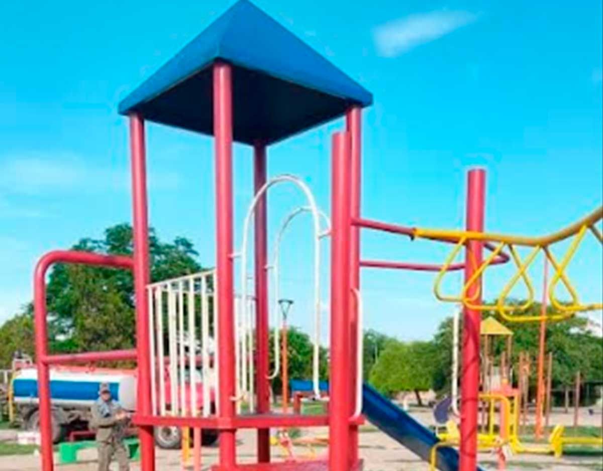 La Municipalidad de la Capital está realizando tareas de mantenimiento general en la Plaza del Malambo ubicada en el barrio Mariano Moreno, donde se renovó la pintura del equipamiento urbano.