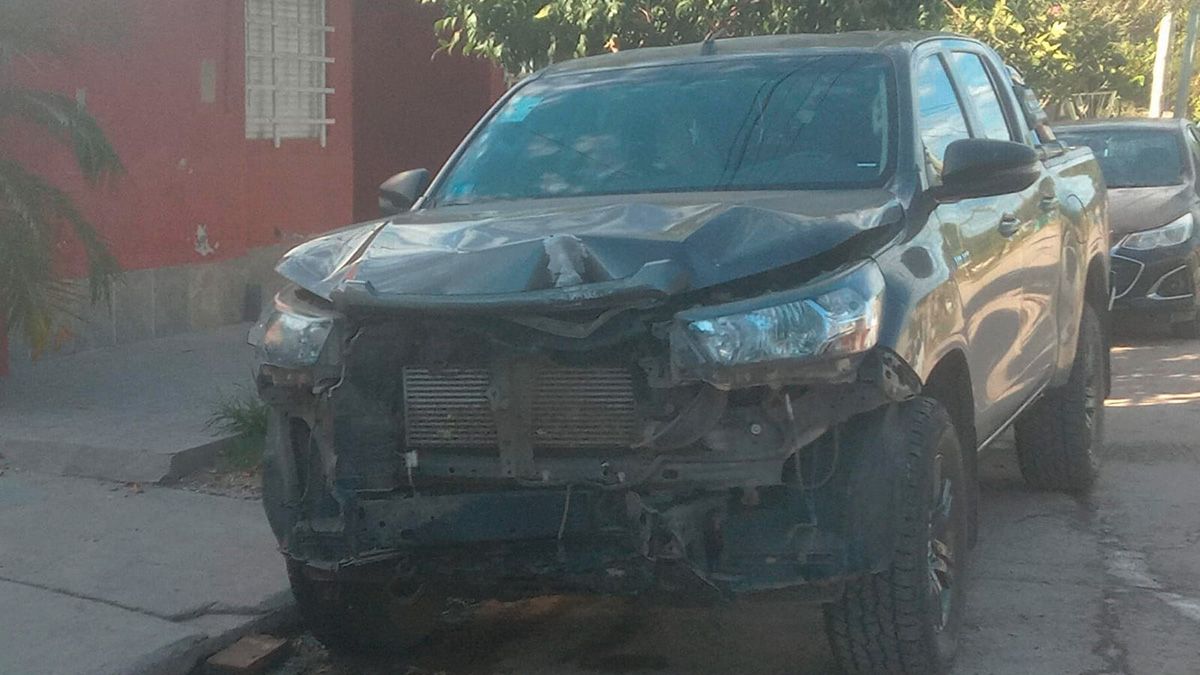 Como consecuencia de la maniobra, la camioneta impactó de manera violenta contra una columna. El frente del rodado quedó completamente dañado, con el capó deformado, las ópticas destruidas y el radiador expuesto.