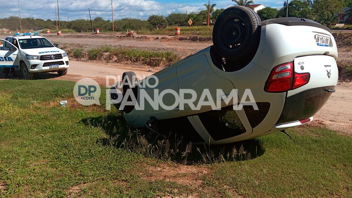 Según informaron fuentes policiales, la conductora de un Citroën C3 blanco que circulaba en sentido Sur–Norte perdió el control del rodado tras chocar contra un montículo de tierra ubicado a la vera de la ruta. El impacto provocó que el vehículo diera un vuelco y quedara con las ruedas hacia arriba.