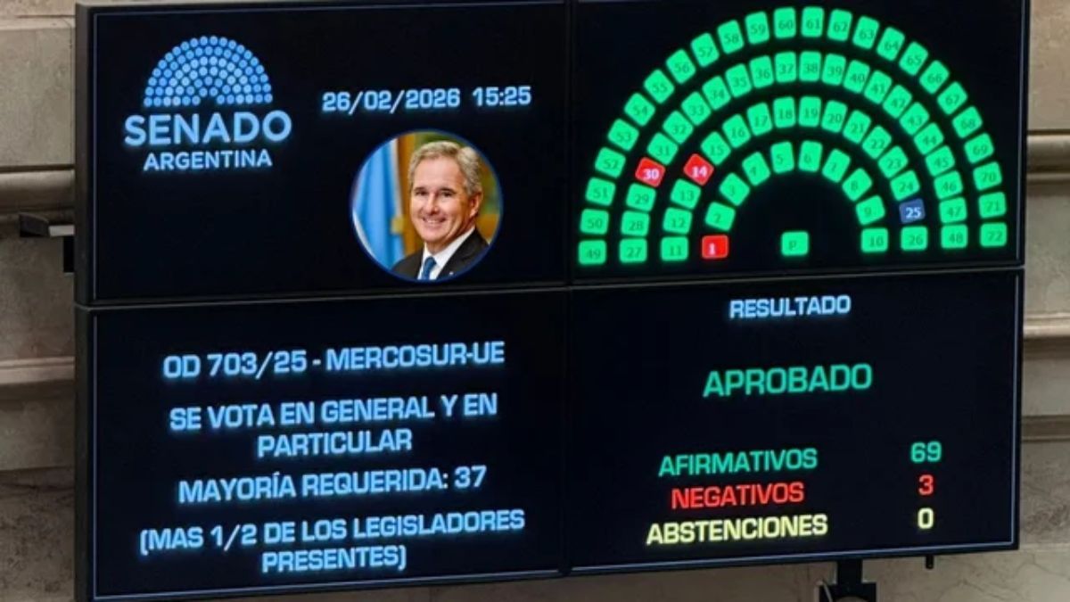 “La Unión Europea y el Mercosur consolidan una de las mayores áreas económicas del mundo: más de 700 millones de personas y un PBI de 22 billones de dólares”, afirmó y sumó que “con esta ratificación, la Comisión Europea (@eu_commission @vonderleyen) contará con las condiciones necesarias para avanzar en su aplicación provisional”, lo cual “permitirá que nuestras exportaciones comiencen a gozar de las preferencias arancelarias negociadas”, amplió.