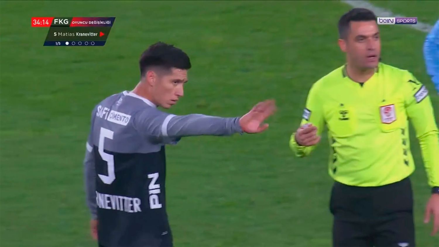 Durante el primer tiempo, el mediocampista surgido en River sufrió una molestia física y el entrenador Aleksandar Stanojević mandó a calentar a los suplentes. A los 34 minutos, el juez de línea levantó el cartel para indicar su salida y el ingreso de Berkay Özcan.