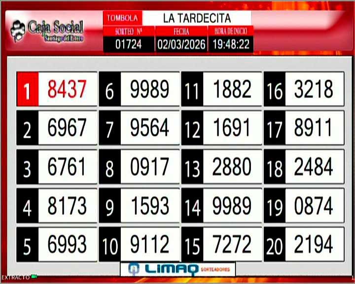 Este lunes 2 de marzo del 2026, como todos los días, se llevó a cabo un nuevo sorteo de la Tómbola Santiagueña.