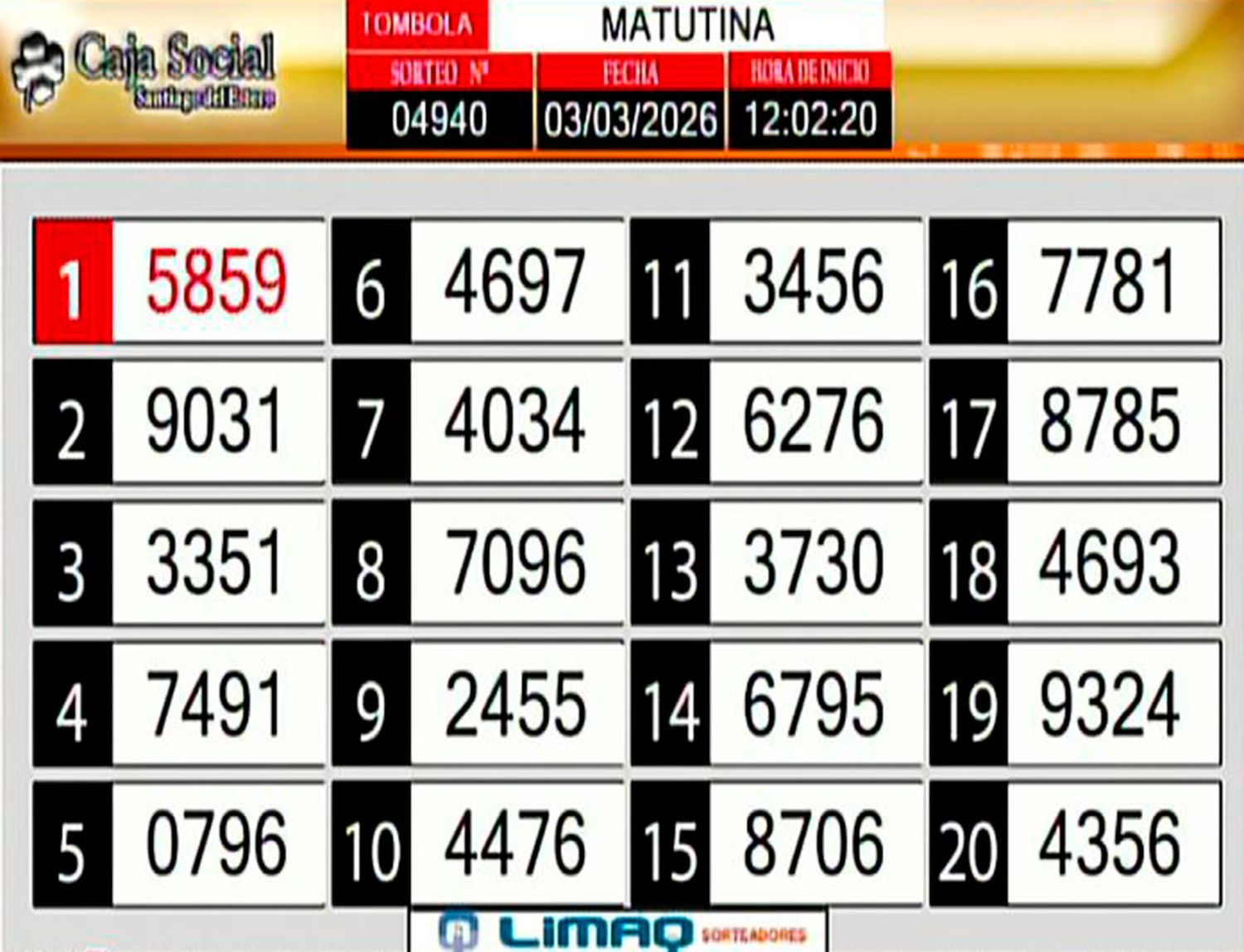 La lista completa de números del sorteo de la Matutina: