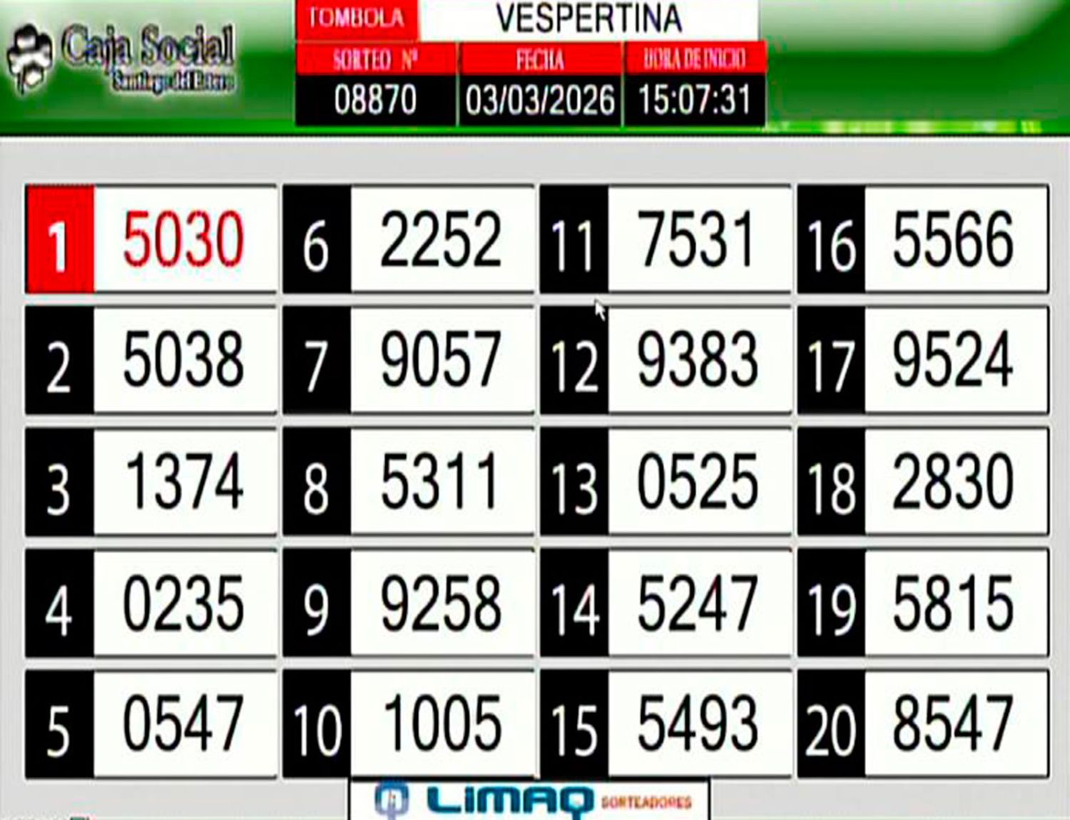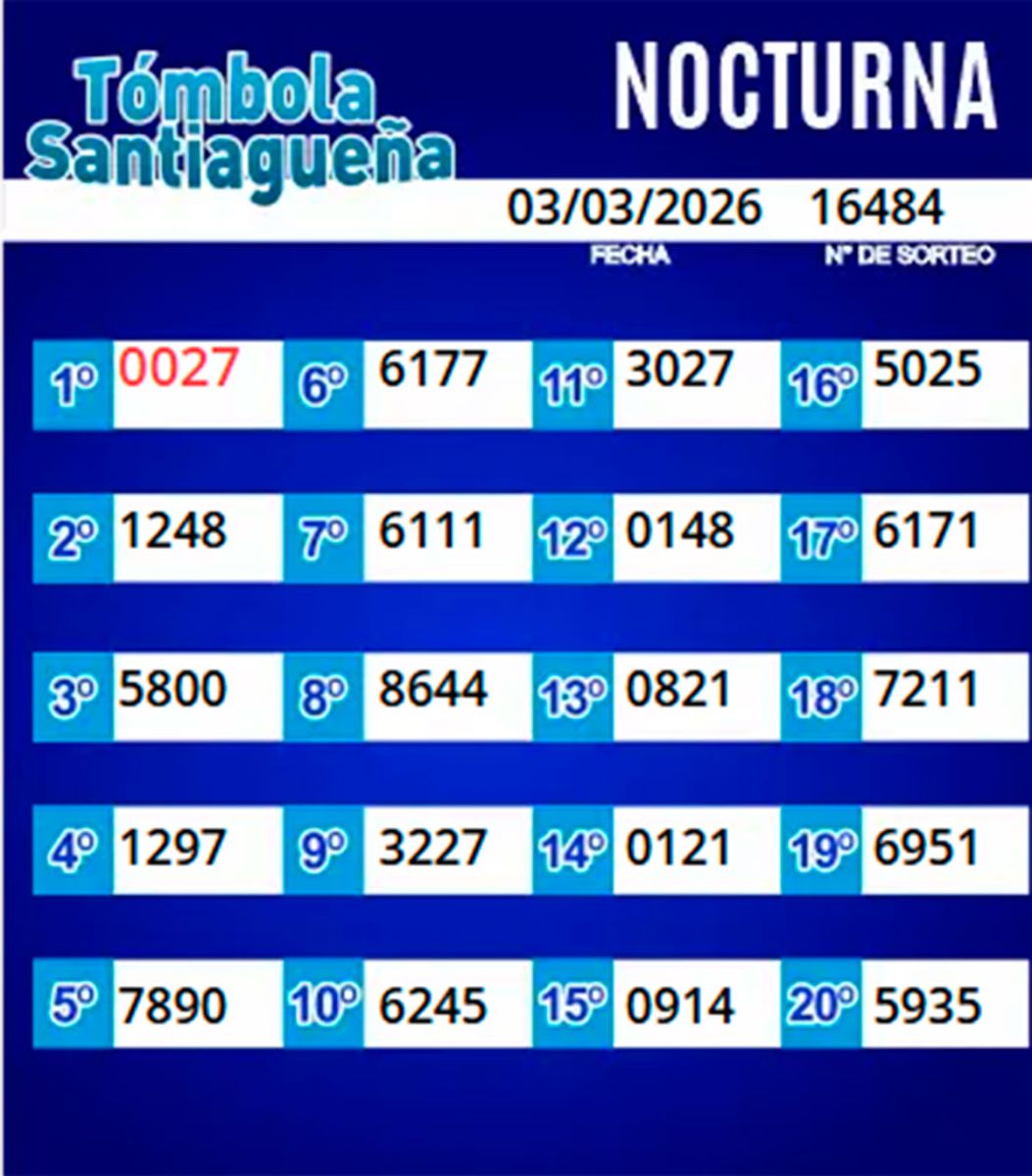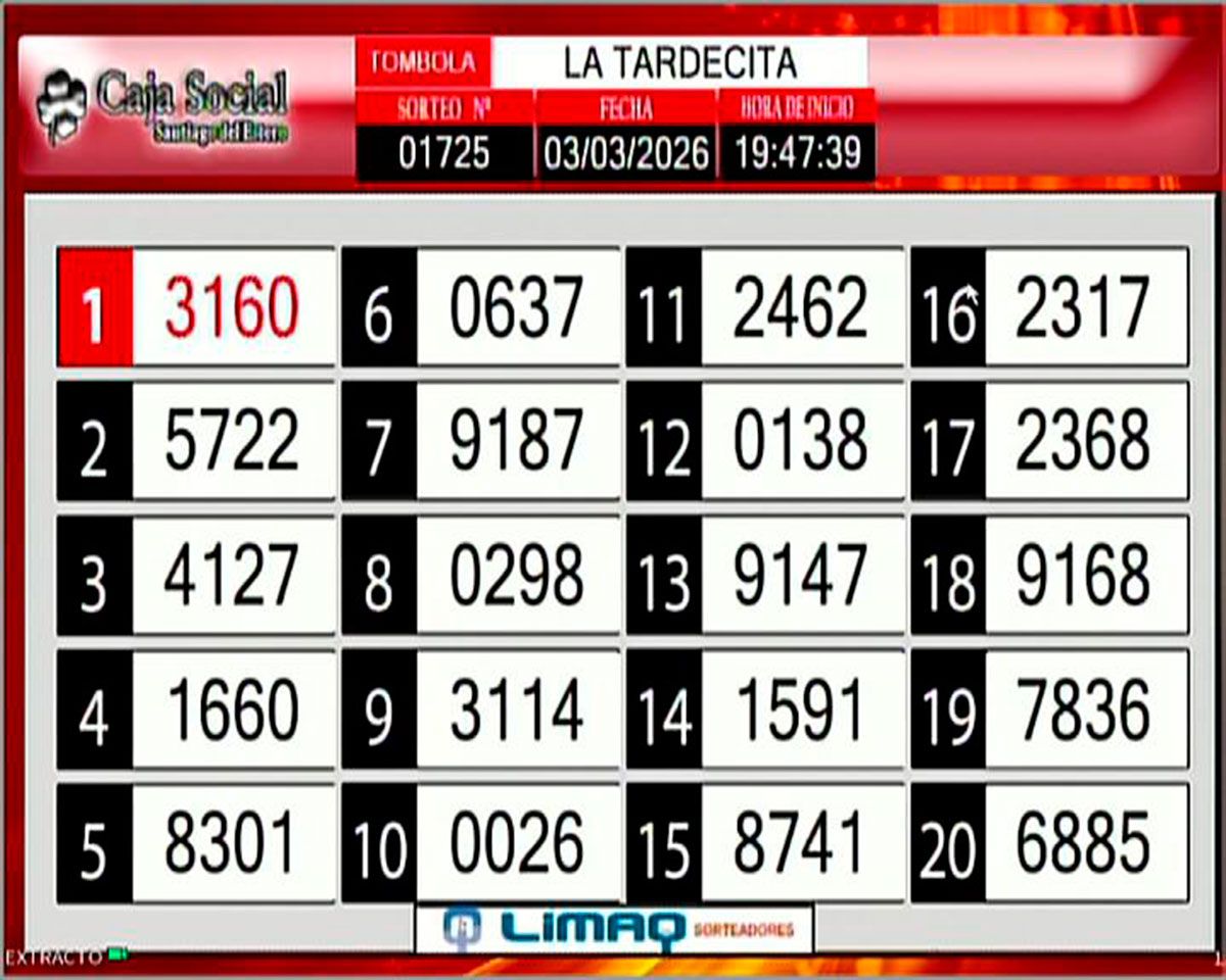 Este martes 3 de marzo del 2026, como todos los días, se llevó a cabo un nuevo sorteo de la Tómbola Santiagueña.