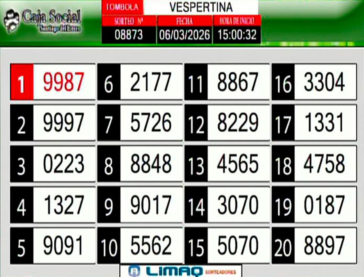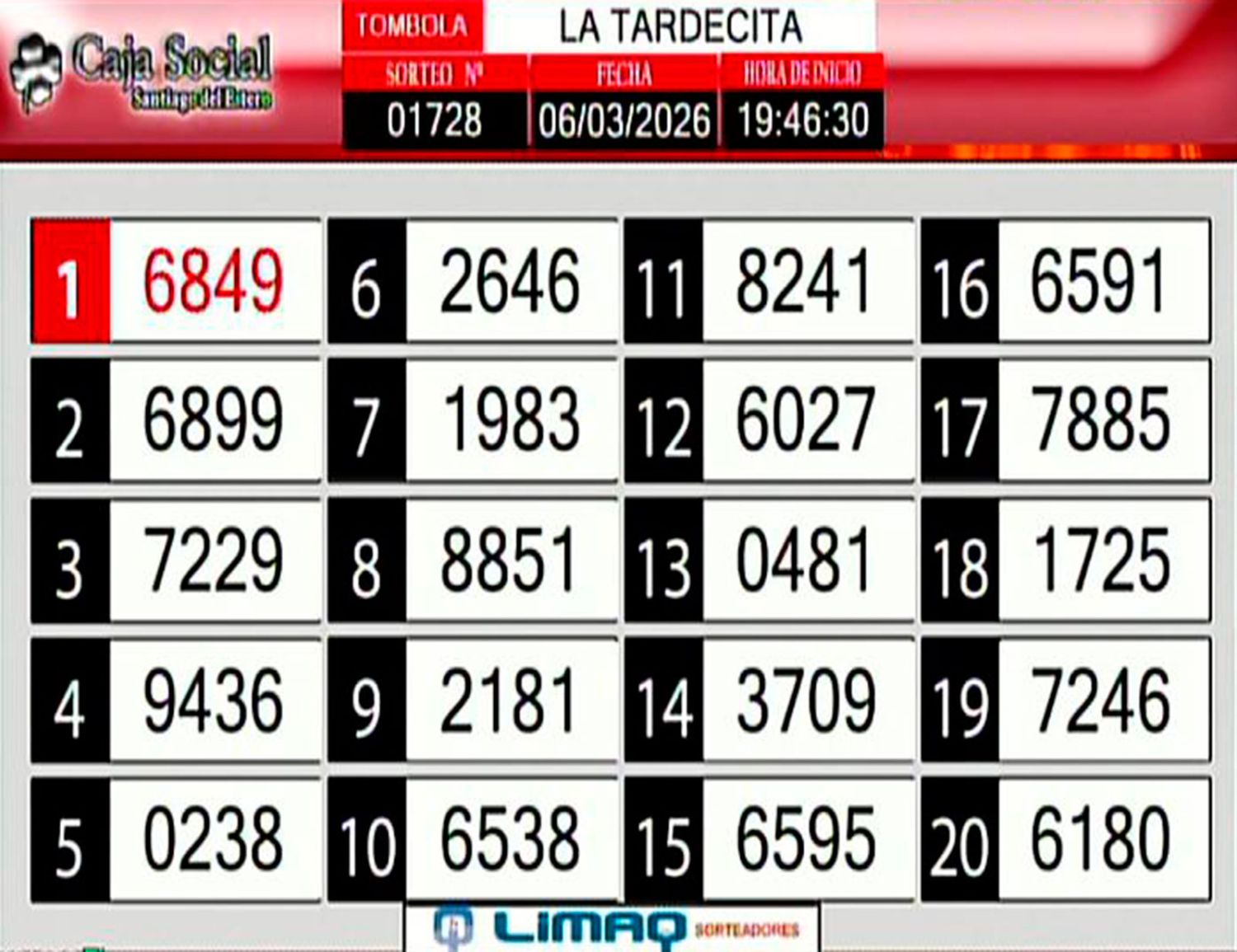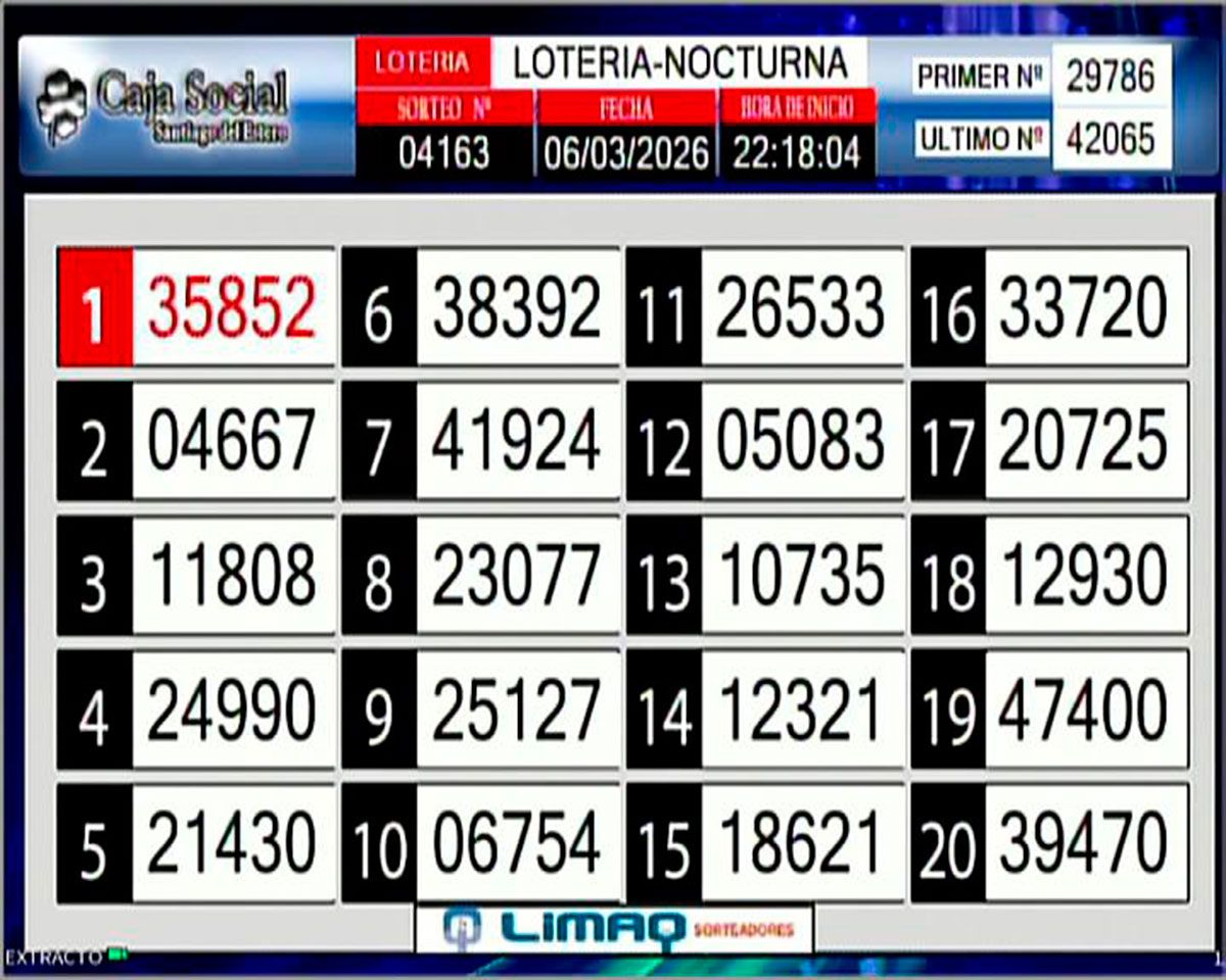 La lista completa de números del sorteo Lotería Santiagueña:
